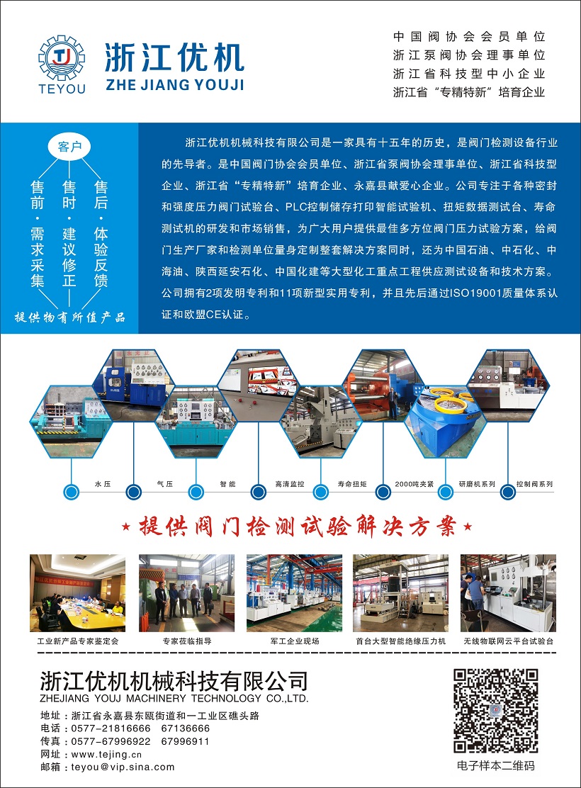 浙江優(yōu)機機械科技有限公司憑借研發(fā)投產的智能集成密封液壓機,成功入榜浙江省先進制造業(yè)首臺套企業(yè)名單,浙江優(yōu)機機械科技有限公司多個產品通過國家閥門(浙江)檢測中心檢測,相關技術經浙江省省級工業(yè)新產品新技術鑒定,擁有2項發(fā)明專利和11項新型實用專利,是浙江省泵閥協(xié)會理事單位、浙江省“專精特新”培育企業(yè)、浙江省專利示范企業(yè)、浙江省科技創(chuàng)新型企業(yè)、溫州市科技創(chuàng)新企業(yè)、永嘉縣百星企業(yè)、永嘉縣愛心企業(yè)、中國石油準入供應單位、中國寶豐能源準入供應單位、山東核電設備有限公司合格供應商。