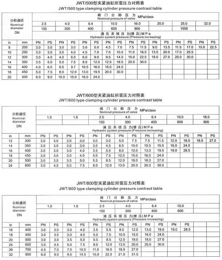 7、     JWT-800型 閥門公稱通徑與公稱壓力試驗范圍
