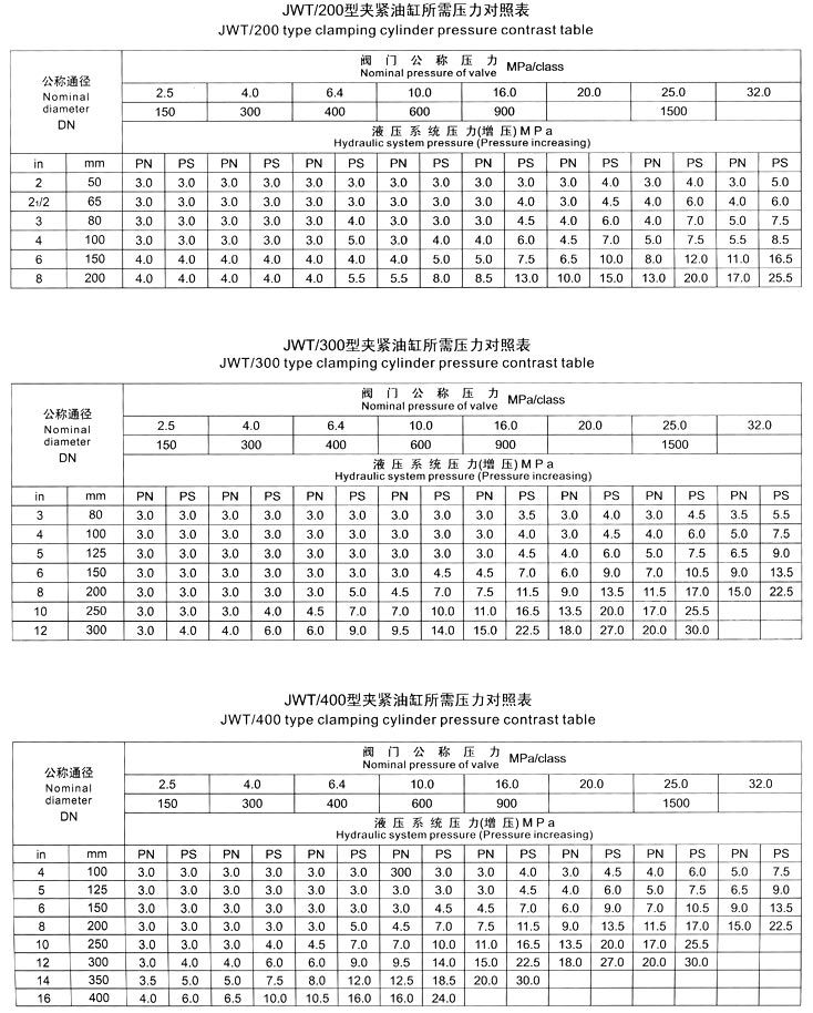 3  、   JWT-300型 閥門公稱通徑與公稱壓力試驗范圍