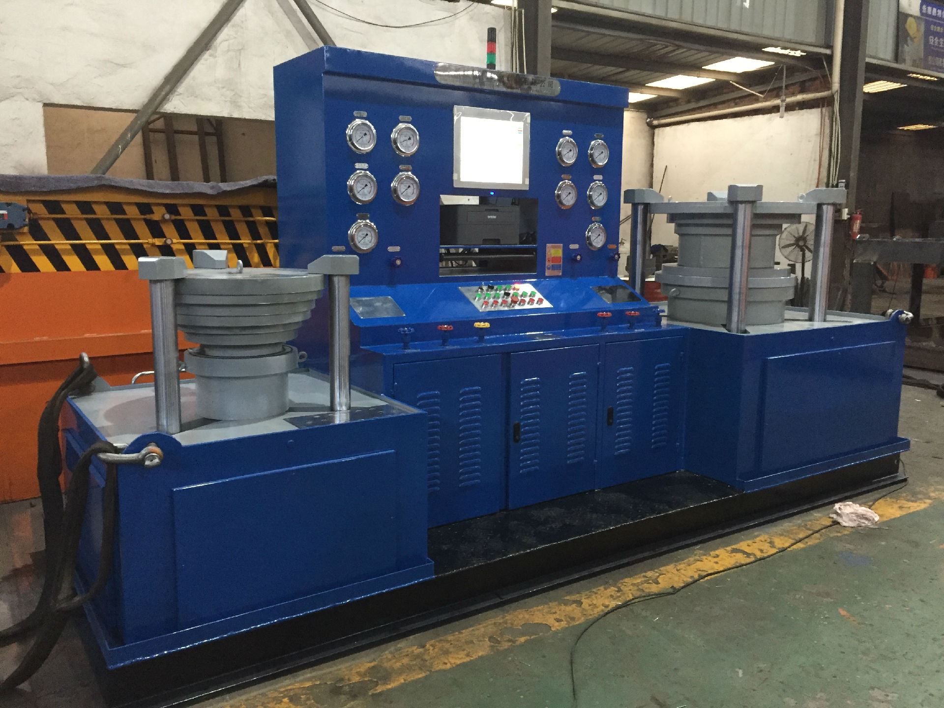 工作過程:根據(jù)閥門的公稱通徑和壓力調(diào)整油缸壓緊壓力——壓緊工件——打開低水泵快速注水——打開高壓水泵——保壓計(jì)時——卸壓、復(fù)位。