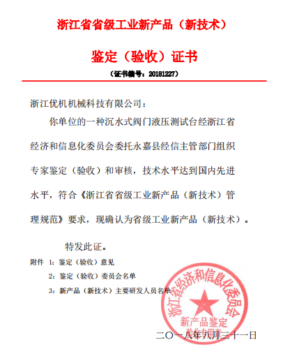 省級工業(yè)新產品鑒定證書