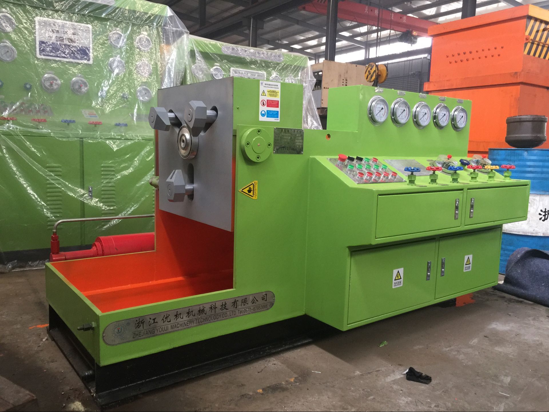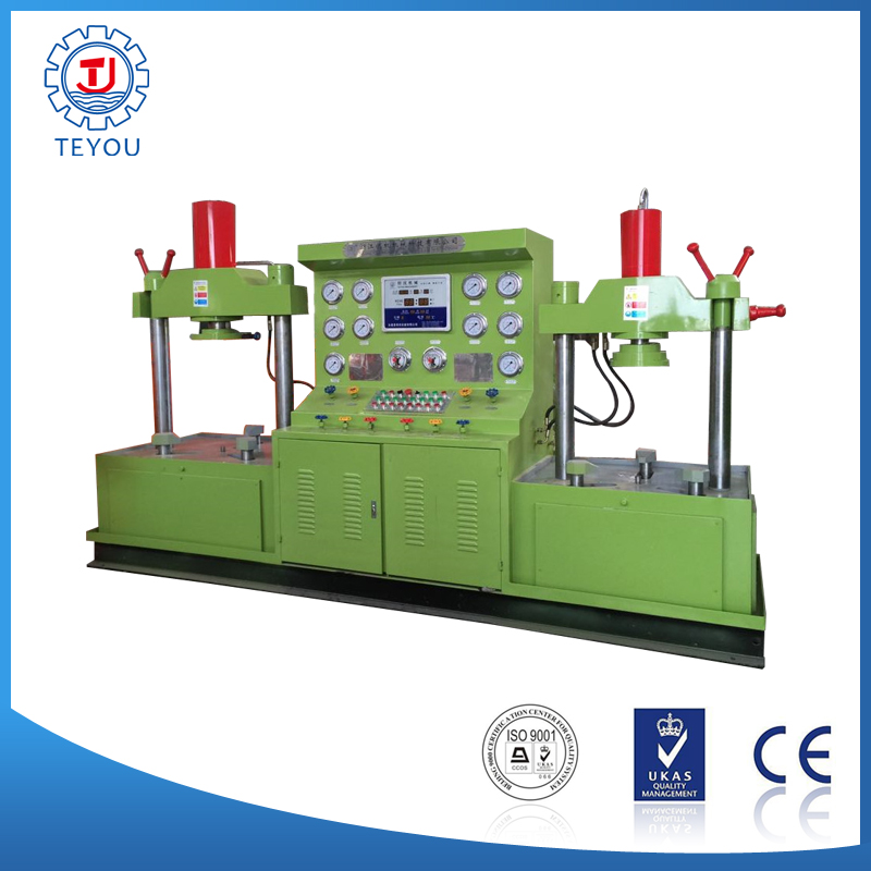 壓爪夾緊力所需的高壓液壓力,由設(shè)備本身的液壓系統(tǒng)增壓而成,試驗介質(zhì)可采用水、煤油或空氣。液態(tài)介質(zhì)可循環(huán)使用。試驗介質(zhì)的試驗壓力經(jīng)增壓達(dá)到設(shè)定的試驗壓力時,增壓自動停止,并自動進(jìn)入設(shè)定的保壓計時,保壓計時結(jié)束后,系統(tǒng)自動發(fā)出聲光報警,以示測試結(jié)束。