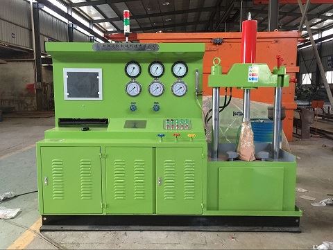 先將供壓泵用的電接點(diǎn)壓力表指針調(diào)節(jié)在所需試壓壓力位置上,關(guān)閉<氣壓開關(guān)>,然后打開<水壓閥開關(guān)>, 按<水泵起動(dòng)>鈕,即可測(cè)試水密封性能的試驗(yàn)。測(cè)試完畢應(yīng)先打開<泄壓閥開關(guān)>排放壓力后卸下被試閥門。