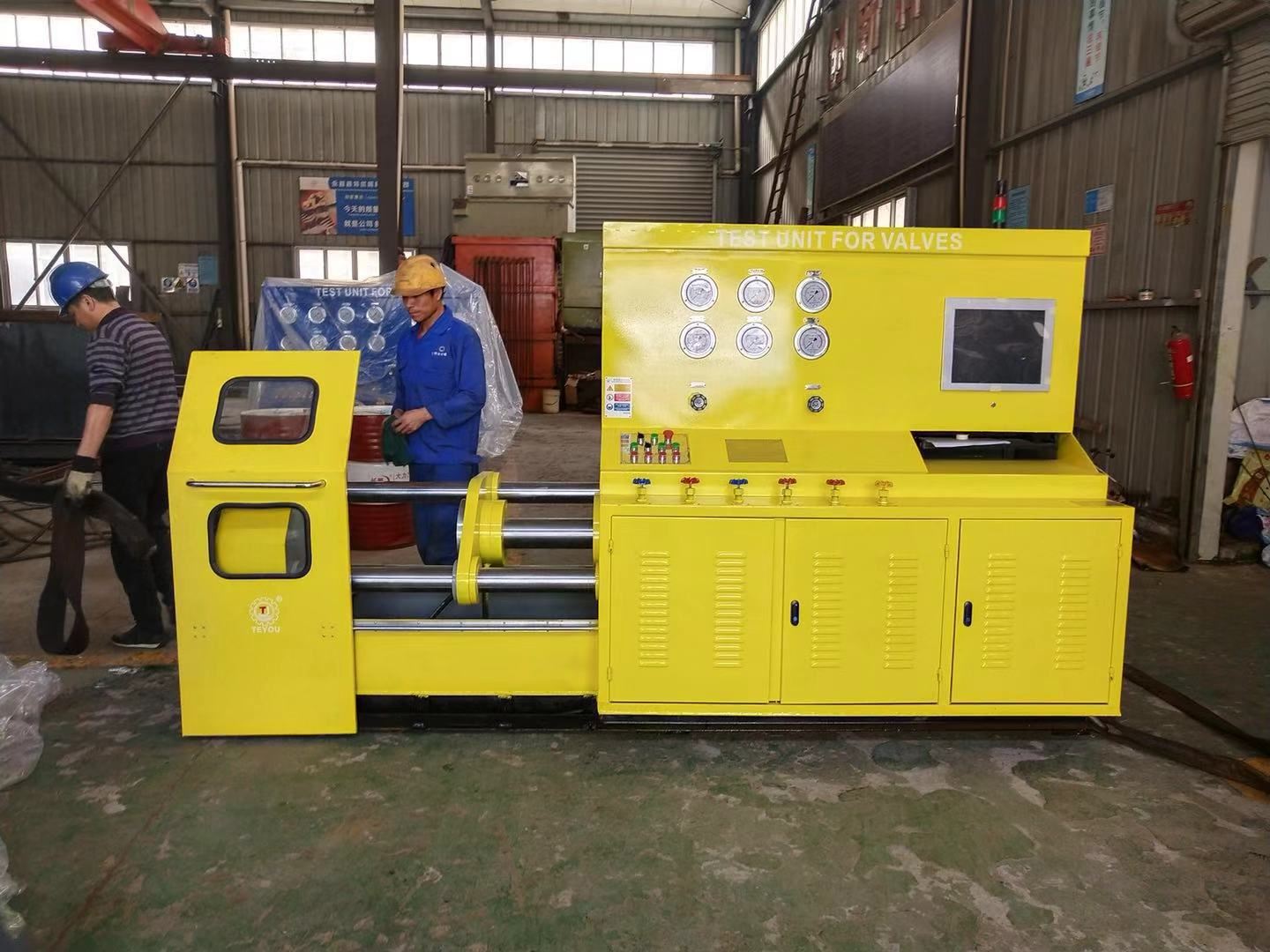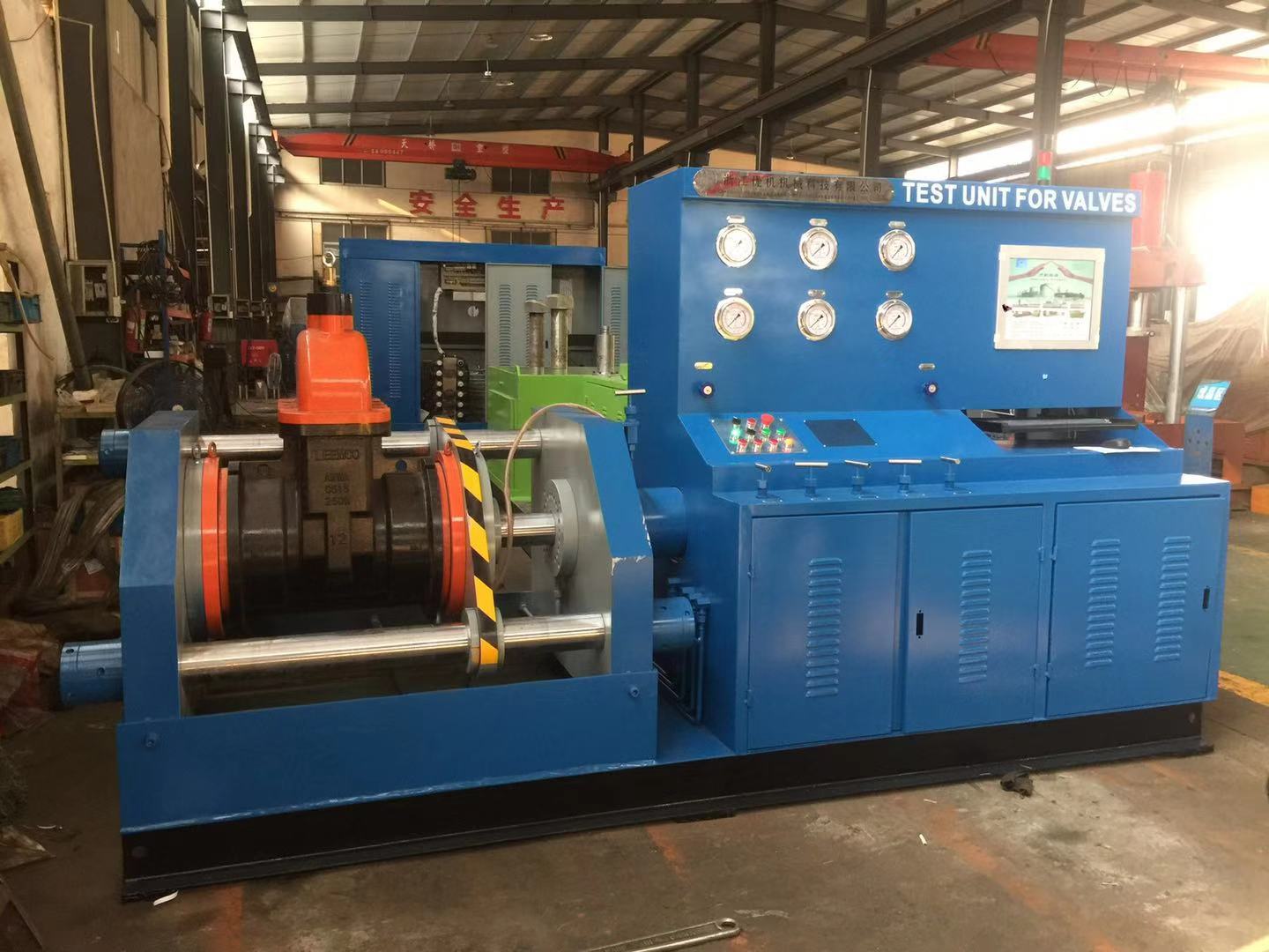 工作過程:根據(jù)閥門的公稱通徑和壓力調(diào)整油缸壓緊壓力——壓緊工件——打開低水泵快速注水——打開高壓水泵——保壓計(jì)時——卸壓、復(fù)位。