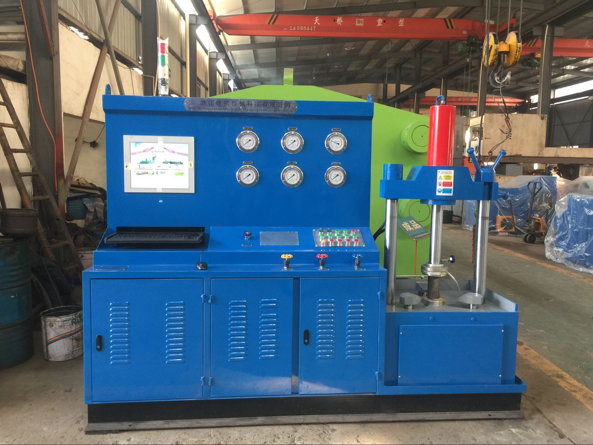 JWZ-Z200型智能PLC控制閥門液壓測試臺自主研發(fā)的新一代抱壓式液壓閥門測試臺并擁有發(fā)明技術(shù)知識產(chǎn)權(quán),專利號ZL2016 1 0260566.7本機(jī)由液壓系統(tǒng)、PLC電腦控制系統(tǒng)、高低壓水泵供壓裝置系統(tǒng)、油壓、水氣壓儀表系統(tǒng)、控制閥門系統(tǒng)、夾緊工作臺系統(tǒng)和液壓介質(zhì)儲存循環(huán)水箱組成,測試過程與結(jié)果,符合有關(guān)規(guī)定和要求。